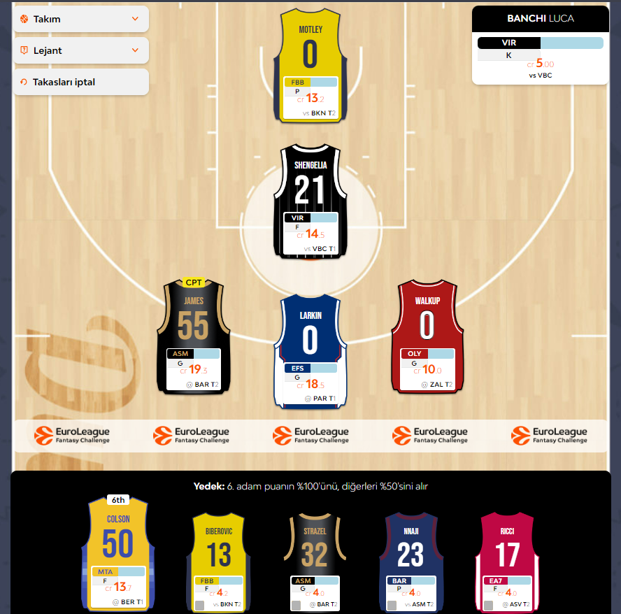 Her hafta öncesi olduğu gibi Euroleague Fantasy oyunundaki seçimlerimi ve takımımda yaptığım güncellemeleri sizlerle paylaşmak istedim, keyifli okumalar.