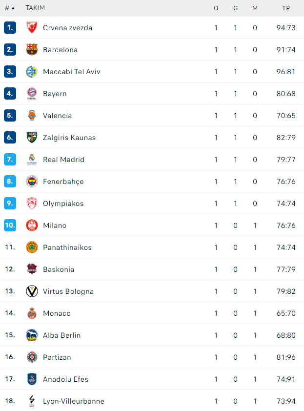 2023-24 Turkish Airlines Euroleague 1. Haftanın Panoraması ve Ödüller