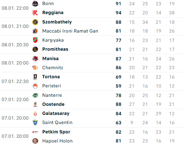 - Chase Audige (Oostende): 21 sayı, 3 ribaund, 9 asist, 26 vp
