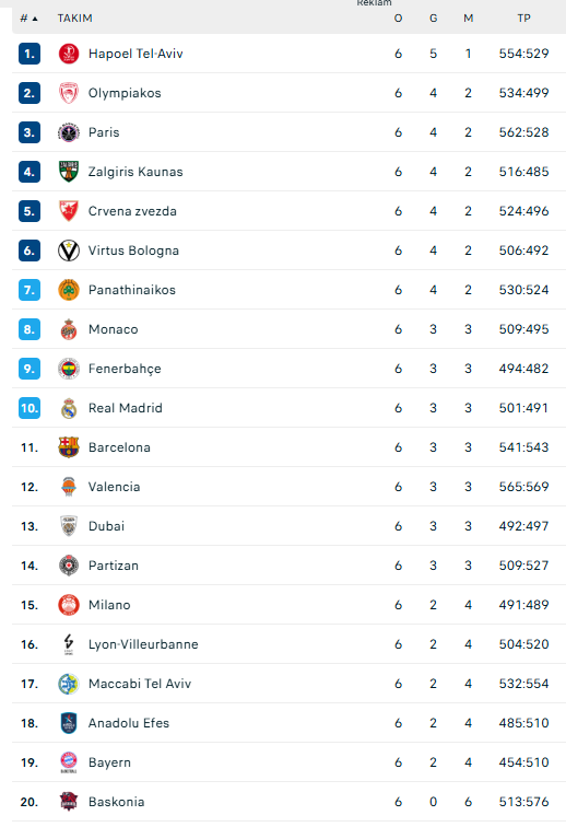Euroleague‘de altıncı hafta tamamlandı.
