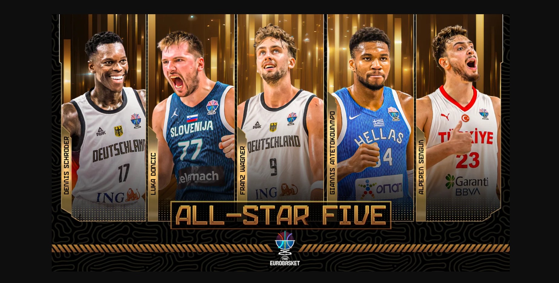 EuroBasket 2025 turnuvanın en iyi beşindeki oyuncular, Avrupa basketbolunun bugününü ve geleceğini mükemmel şekilde özetliyor. Schröder ve Wagner, Almanya’nın kolektif başarısını temsil ederken; Giannis ve Doncic bireysel dominasyonlarıyla öne çıktı. Alperen ise Türkiye’nin yeni altın jenerasyonunun lideri olarak parladı.